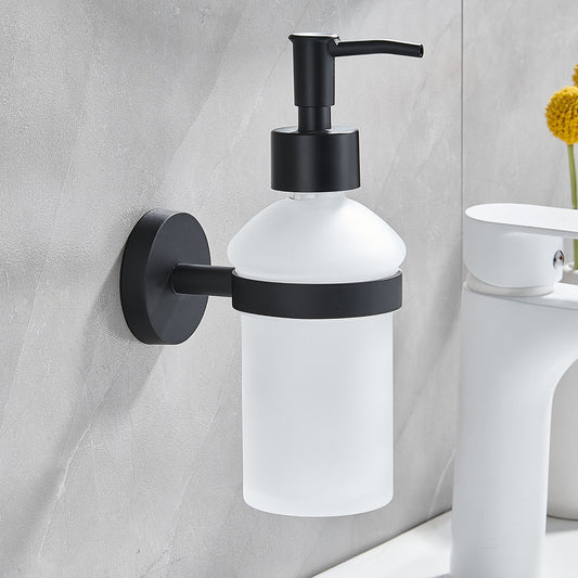 FLYBATH Soap Dispenser 250 ml Glass Design with Pull Function Stainless Steel Matte Black