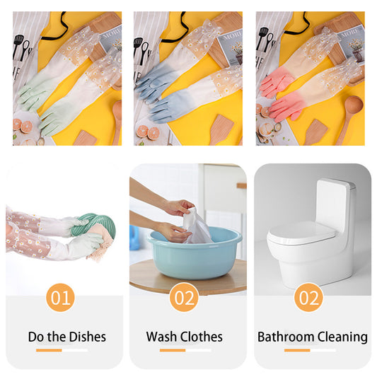 FLYBATH 2 Pairs Gloves for Household Purposes Household PVC Cleaning Gloves 46CM