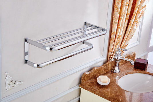 FLYBATH Towel Rack Shelf Holder Double Layer Brass Chrome Wall Mounted,58.5 cm / 23 inches