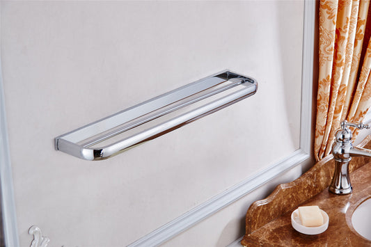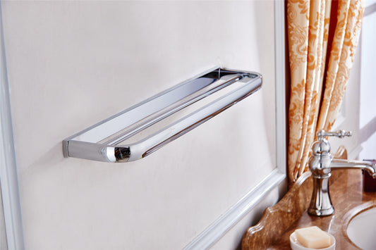 FLYBATH Towel Rail Bar Holder Double Layer Brass Polished Chrome Wall Mounted, 57.5 cm / 22.6 inches